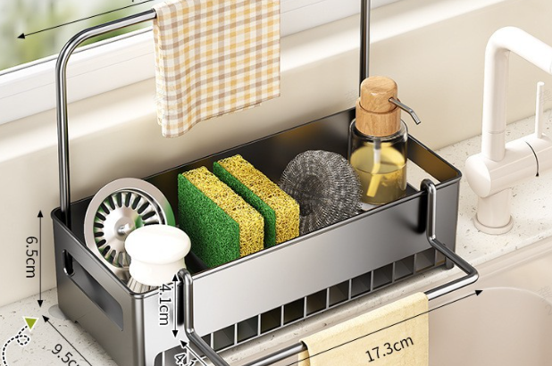 Keukengootsteen droogrek, metalen sponsafvoerhouder, multifunctioneel opbergrek voor thuis, opbergorganizer, huishoudelijke benodigdheden, herfstdecoratie, keukengadgets