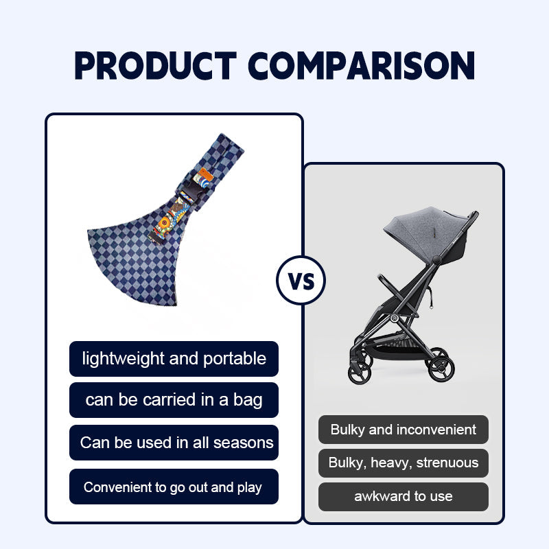 Draagbaar en veelzijdig: Beter draagbaar en veelzijdiger dan een wandelwagen. Gemakkelijk op te bergen in je tas, het kan omgaan met verschillende weersomstandigheden en omgevingen, zoals regenachtige dagen en drukke mensen.