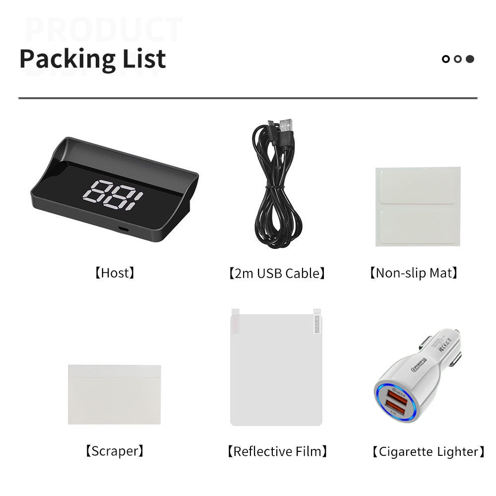 Pakket meegeleverd: 1* Head-Up Display snelheidsmeter voor auto's