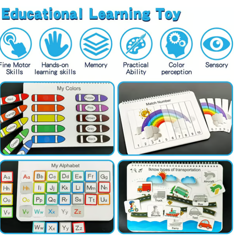 DUURZAAM EN KINDVRIENDELIJK ONTWERP - Omdat we begrijpen dat peuters erg actief zijn, heeft dit boek dubbel dikke pagina's en stevige onderdelen die niet buigen, scheuren of slijten. Alle materialen zijn niet giftig en zorgvuldig geselecteerd om veilig gebruik tijdens het spelen te garanderen. De duurzame constructie garandeert langdurig gebruik, waardoor het een betrouwbare leerpartner is tijdens de vroege kinderjaren.