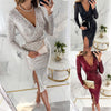 Aantal verlagen voor 💃Elegante wikkeljurk met V-hals, split en pailletten💫50% KORTING💫