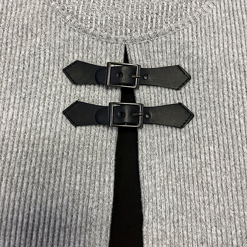 CHIQUE GESPACCENTEN - Unieke gespen van imitatieleer voegen een vleugje moderne verfijning en visuele interesse toe. Ze dienen als stijlvol middelpunt en tillen de jurk van een eenvoudig basisstuk naar een opvallend kledingstuk.