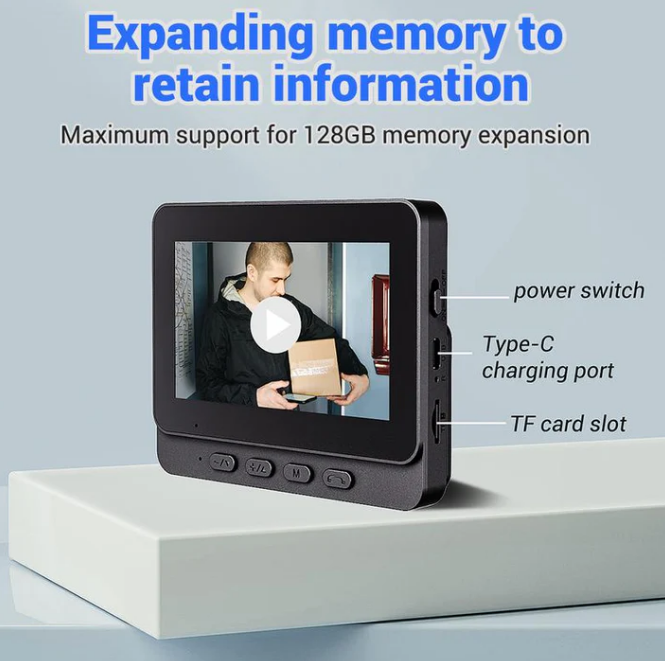 Draadloze deurbelcamera: 1080P, 170° hoek, 4,3-inch scherm, IPX65 waterdicht voor buitengebruik, nachtzicht