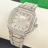 Volledig versierd met strass-steentjes: Dit horloge is dicht bezet met sprankelende strass-steentjes en biedt een oogverblindende en luxueuze uitstraling. De stralende glans zorgt ervoor dat je opvalt en een gedurfd statement maakt, perfect voor een hiphop-geïnspireerde modestijl.