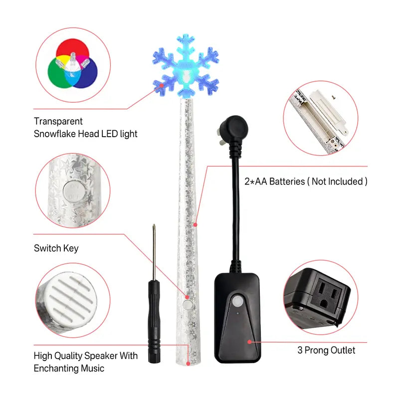 De toverstaf straalt en speelt vrolijke melodieën terwijl hij sprookjesachtige feestmagie tot leven brengt – gewoon bij u thuis.