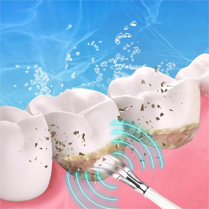 Met hoogfrequente vibratietechnologie om tandsteen van tanden te verwijderen en de meeste mondproblemen op te lossen, zelfs op de moeilijkst bereikbare plaatsen, om uw tanden en tandvlees gezond te houden, zoals tandsteen, tandbacterieplaque, tandsteen en vlekken.