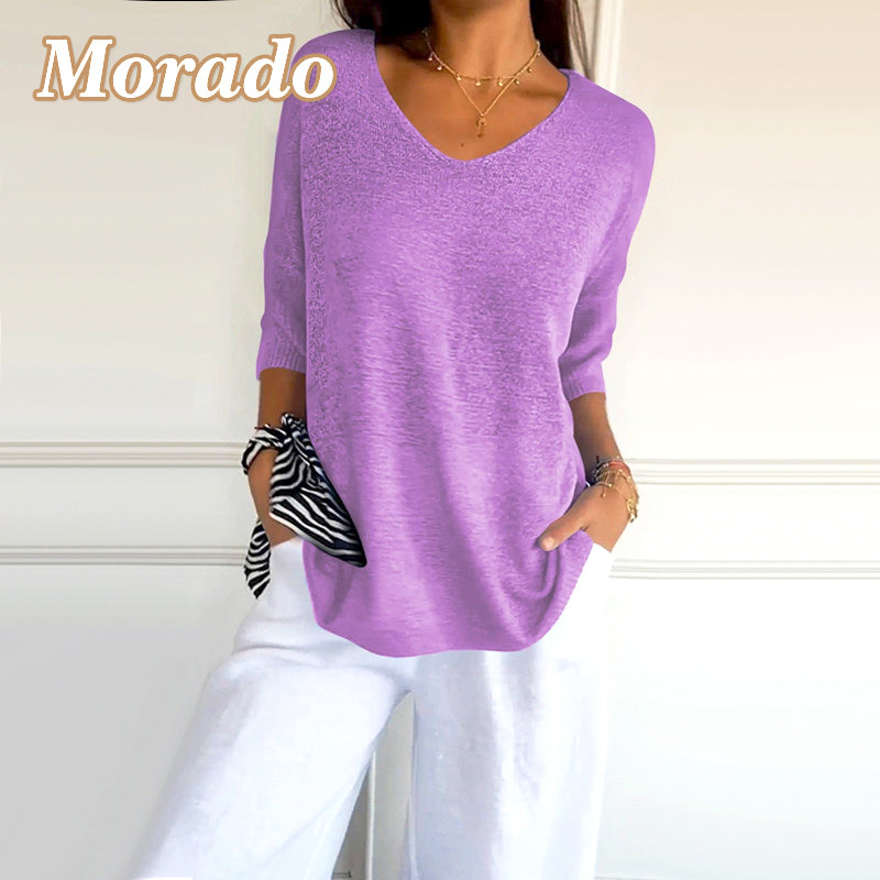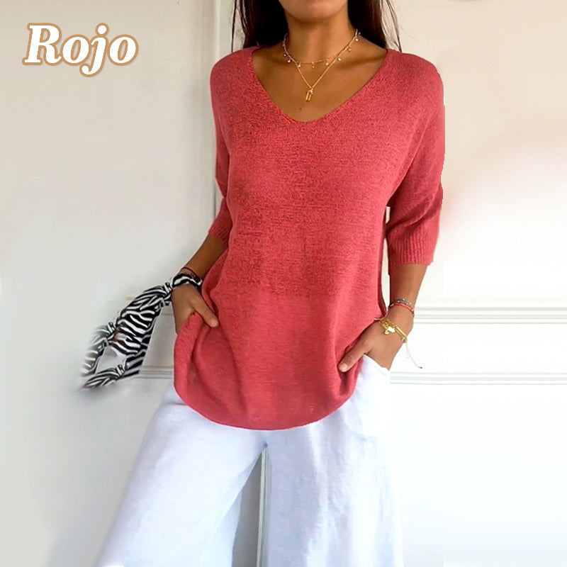 💖LAATSTE DAGS VERKOOP 50% KORTING🥰Effen gebreide top met V-hals