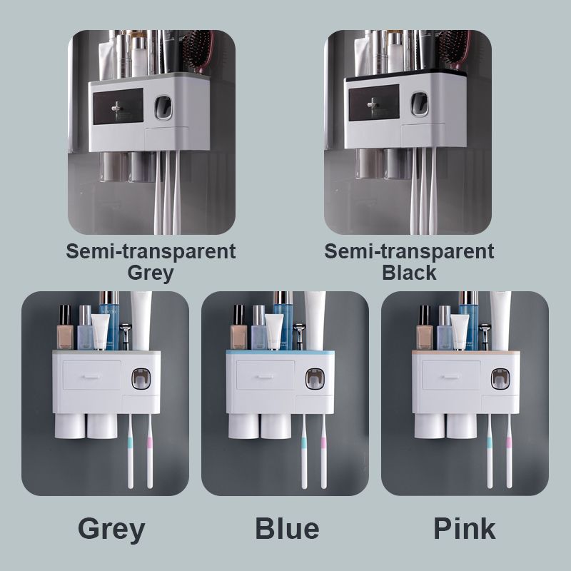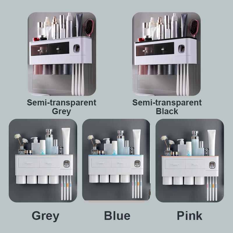 Deze multifunctionele tandenborstelhouder wordt geleverd met een automatische tandpastadispenser, waardoor u de tandpasta gemakkelijk kunt uitknijpen zonder verspilling. De 2/3/4 magnetische mondwaterbekers zijn ontworpen met een omgekeerde afvoer, zijn stofbestendig en waterdicht. U kunt er 6 tandenborstels tegelijk aan ophangen, wat geschikt is voor het hele gezin.