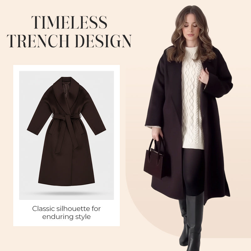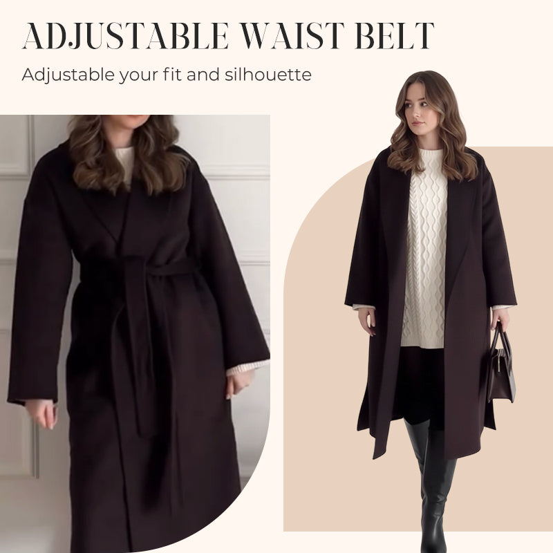 VERSTELBARE TAILLE RIEM - Accentueer uw figuur en voeg een vleugje elegantie toe met de bijpassende strikriem. Trek de riem aan voor een klassieke, getailleerde look of draag de jas open voor een meer ontspannen, moderne uitstraling.