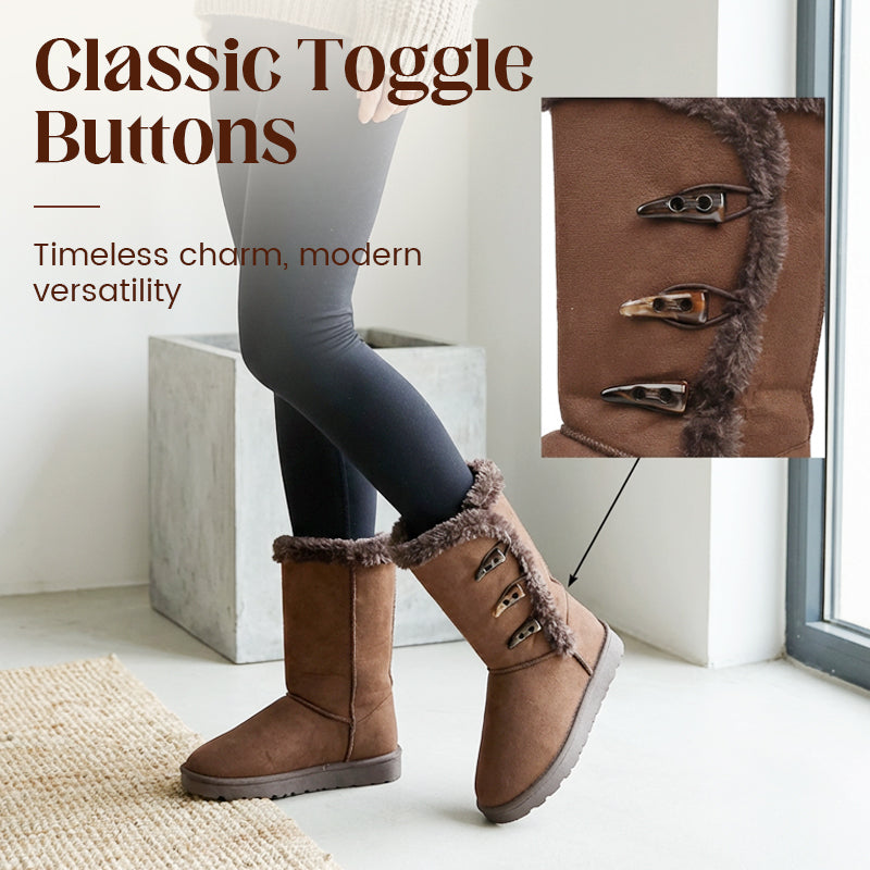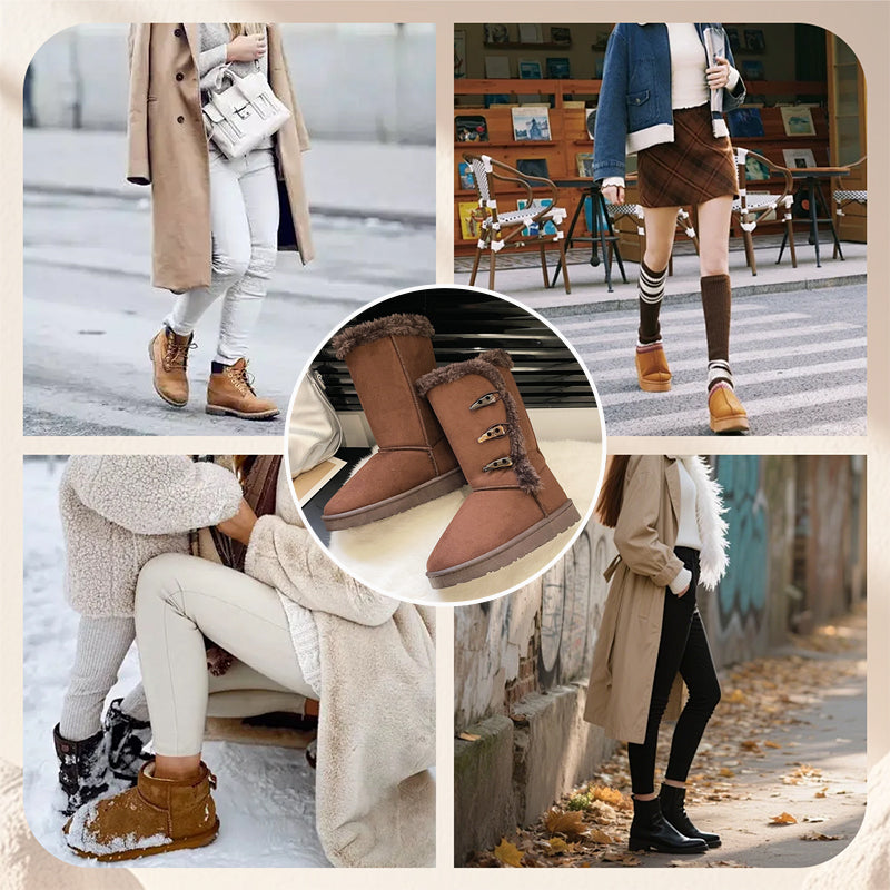 KLASSIEKE KNOPSTIJL - Geef je wintergarderobe een upgrade met een tijdloos ontwerp. De decoratieve drie knopen geven deze laarzen een klassieke charme, waardoor ze perfect passen bij leggings, jeans of winterjurken.