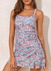 Vintage 2-delige tankiniset: Skirtini Tankini, tankinitop met bikinibroekje, gerimpeld zwemtopje, vierkante hals tankiniset met zijsplitrok, open rug badpak, push-up badpak met uitneembare zachte vulling biedt geweldige ondersteuning en verbetert je vorm