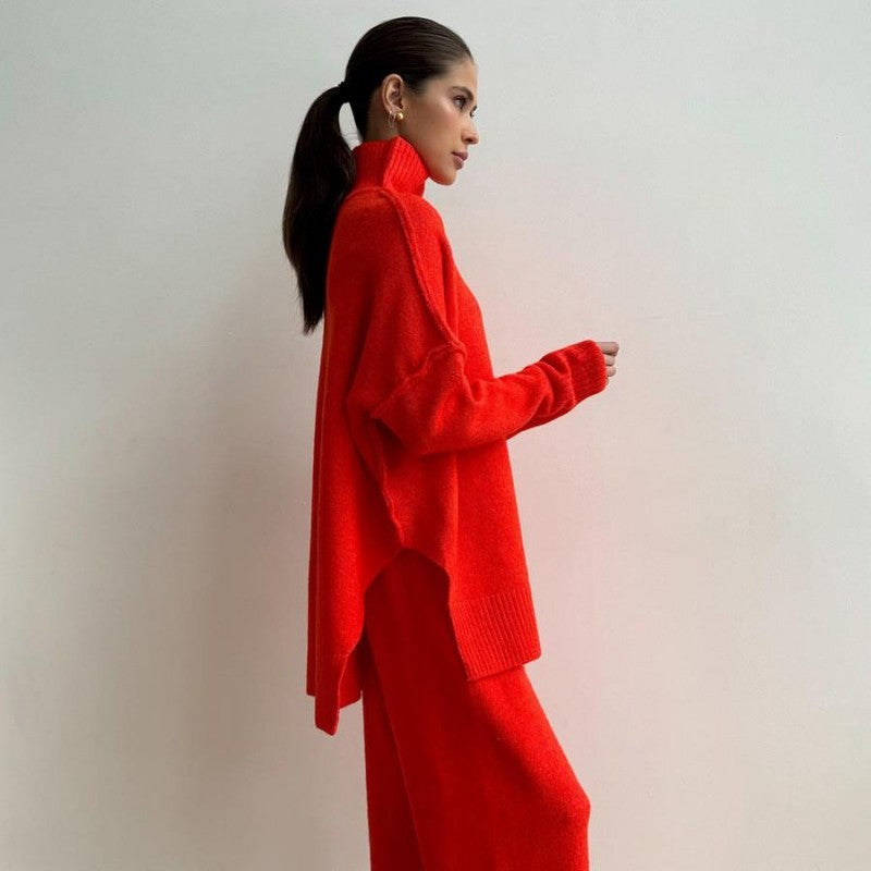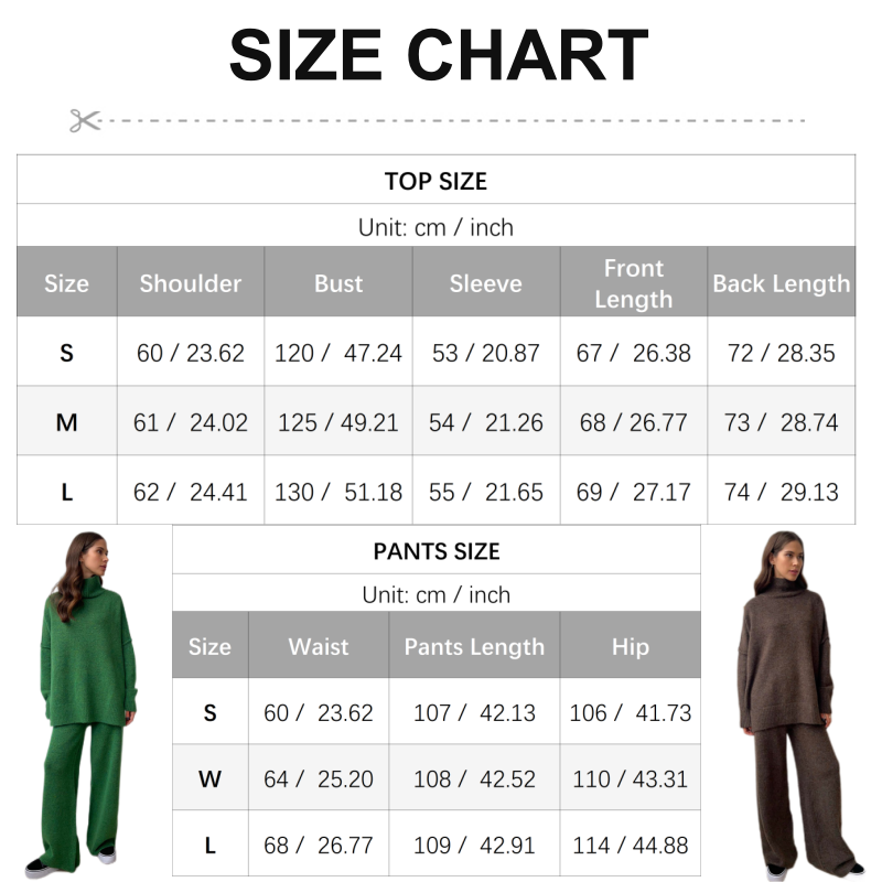 GEMAKKELIJK TE COMBINEREN: Deze gebreide set is perfect om te combineren, waardoor het een uitstekende keuze is voor wisselvallig weer. De trui kan worden gecombineerd met jassen of mantels, terwijl de wijde broek kan worden gestyled met laarzen of sneakers voor een trendy, relaxte look.