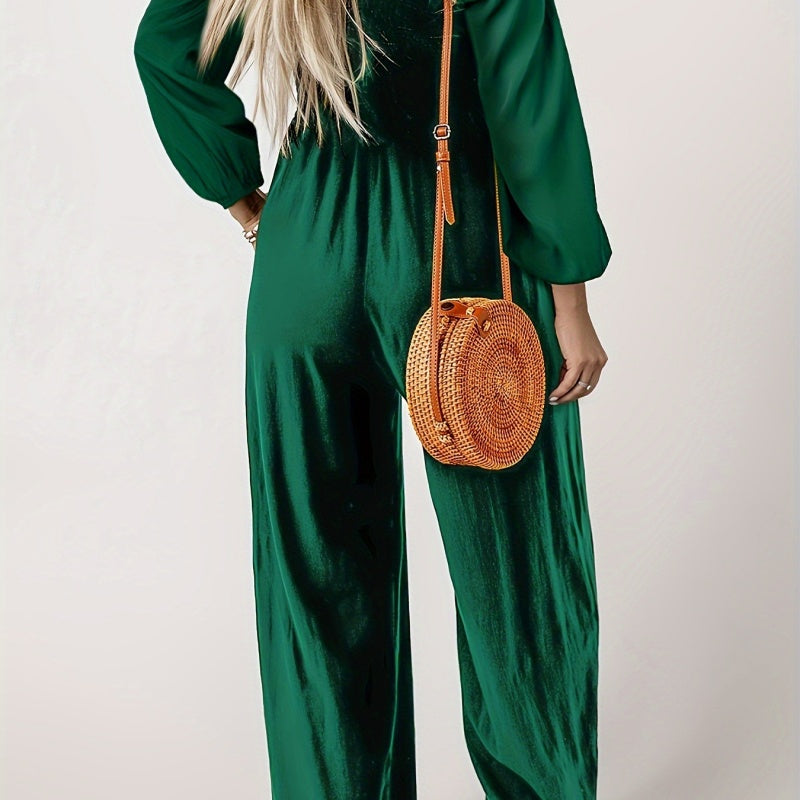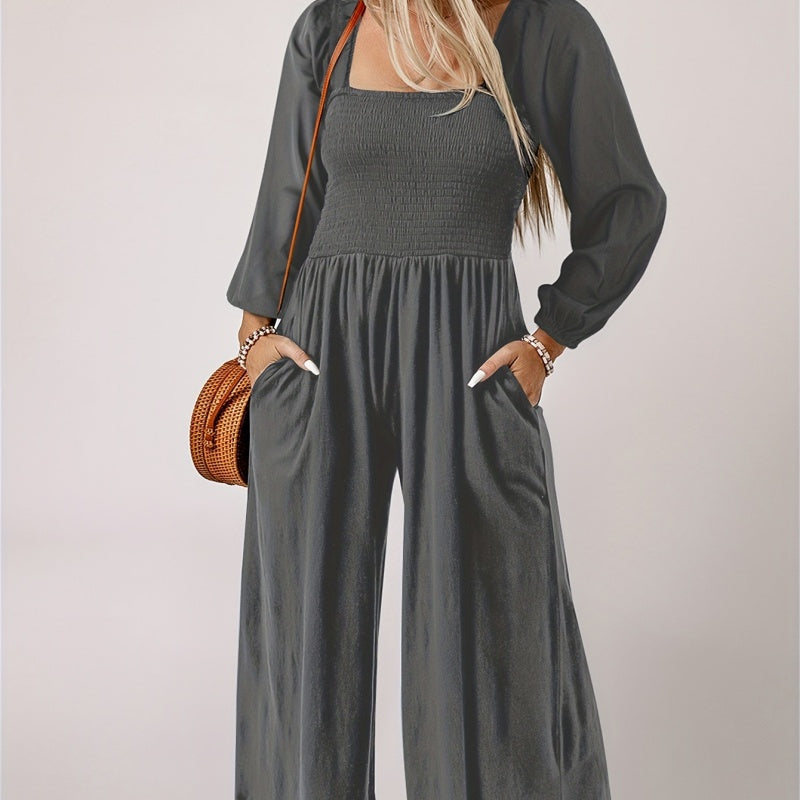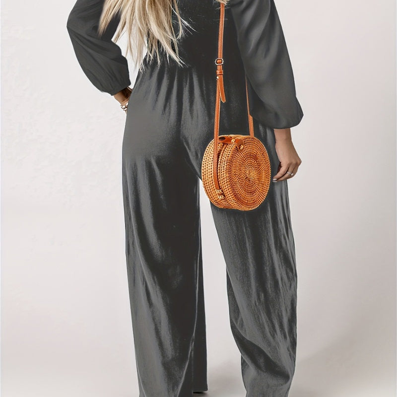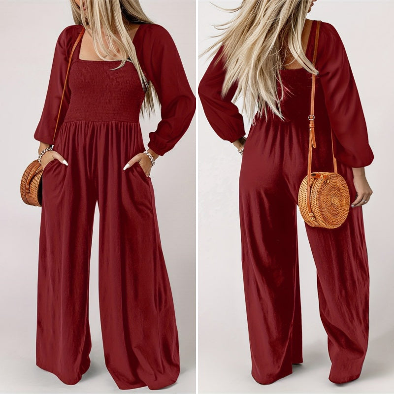 Pakket bevat: 1*casual jumpsuit met lange mouwen en wijde pijpen voor dames