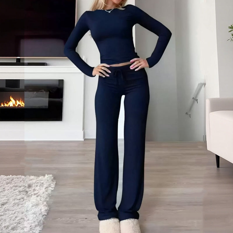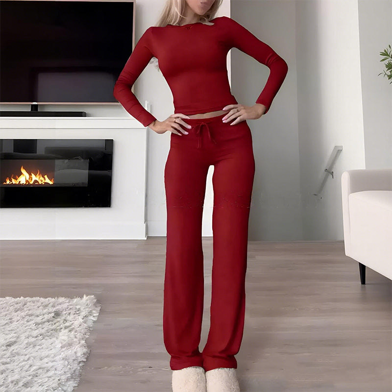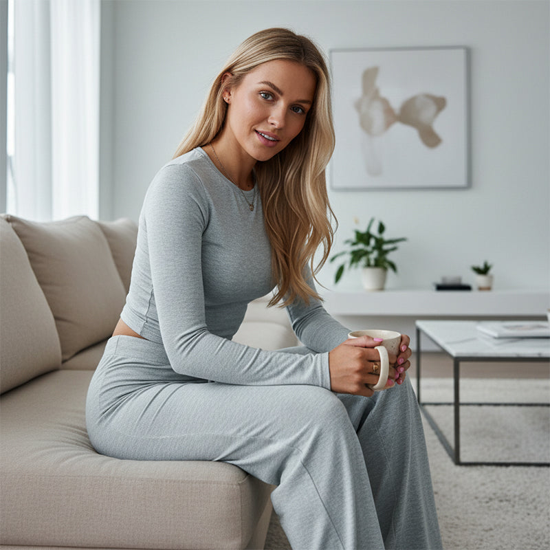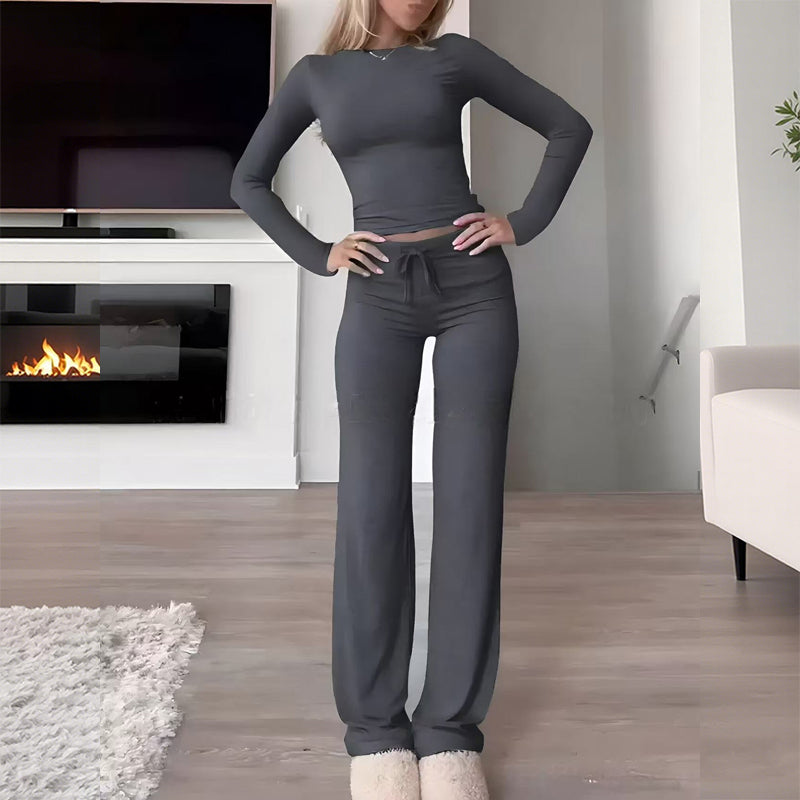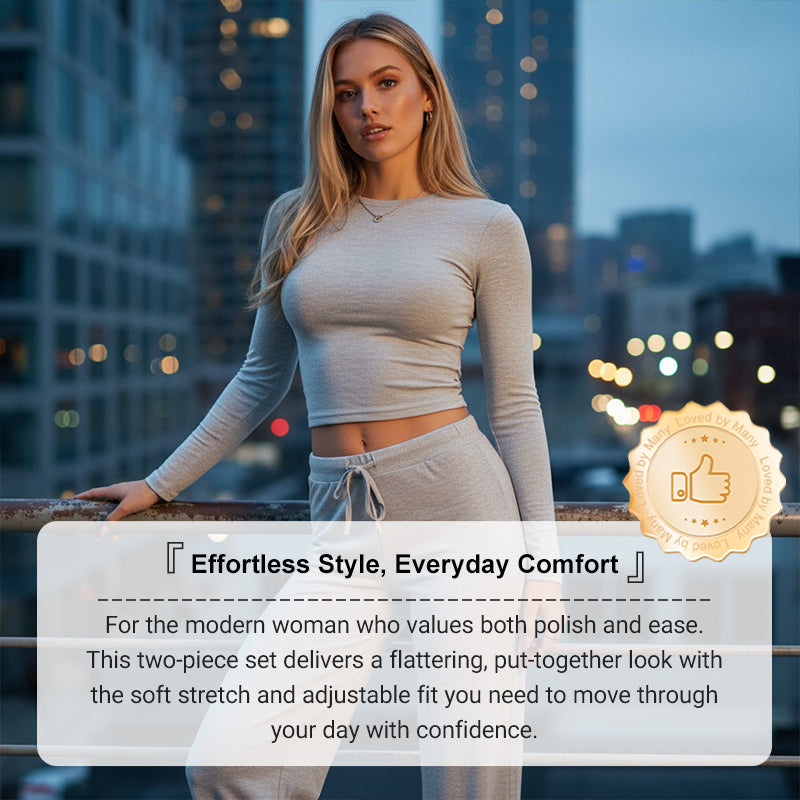 FLATTEREND SILHOUET: De slim-fit top accentueert je natuurlijke rondingen, terwijl de rechte broek een lang, slank profiel creëert. Deze combinatie zorgt voor een evenwichtige look die zowel comfortabel als ongelooflijk chic is.