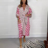 Omarm chique en comfortabele stijl met onze Dames Print V Hals Losse Pasvorm Jurk. Ontworpen voor veelzijdigheid en elegantie, deze jurk heeft een flatterende V-hals en een losse pasvorm die prachtig valt op alle lichaamstypen. Of u nu naar een brunch met vrienden gaat of een casual dagje uit, deze jurk biedt de perfecte mix van stijl en comfort. Met zijn opvallende print en relaxte design is het de ideale keuze voor moeiteloze styling die altijd opvalt.