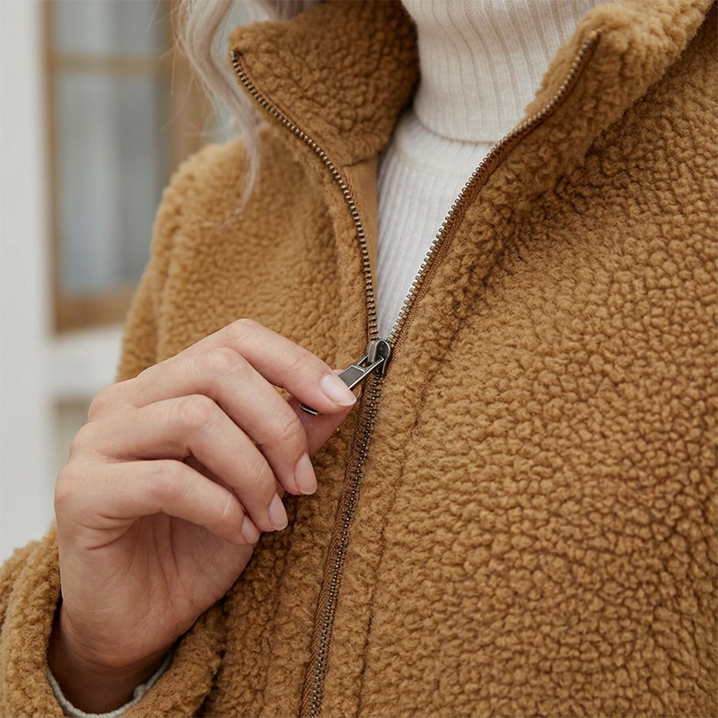 VOLLEDIGE RITS VOOR - Gemakkelijk aan te trekken en te combineren met andere kledingstukken. Je kunt de rits dichtdoen voor maximale warmte of open laten voor een meer ontspannen look, zodat je je gemakkelijk kunt aanpassen aan wisselende temperaturen.