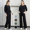 STIJLVOLLE SET: Deze set bestaat uit een lange mouwen, ronde hals top die is gecombineerd met een wijde broek, wat mode en ontspanning samenbrengt. De top kan alleen worden gedragen of onder een jas, waardoor zowel elegantie als veelzijdigheid wordt geboden.